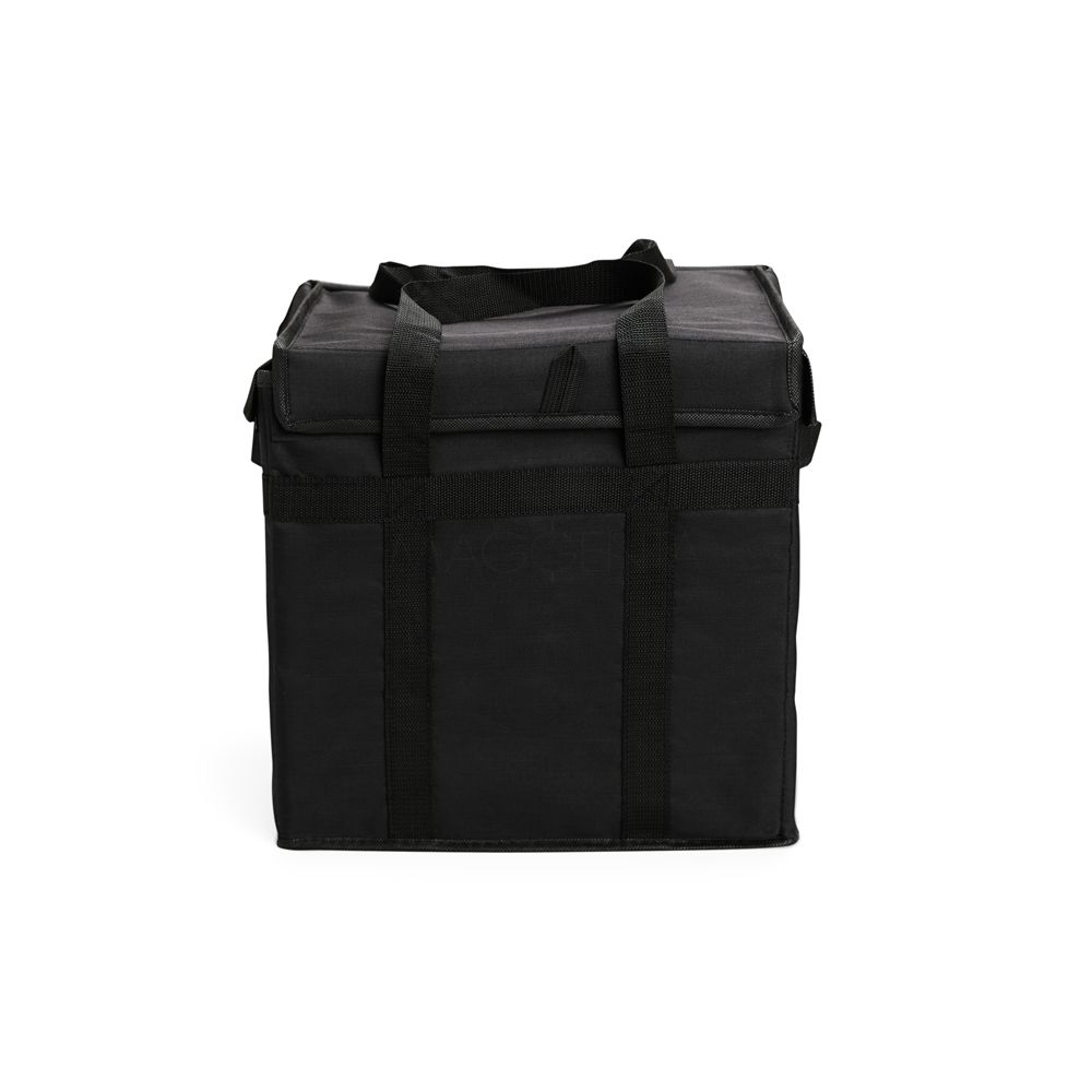 Bolsas Térmicas Bolsa térmica confeccionada em Oxford impermeável, fechamento em velcro e capacidade máxima de 35 litros. Conta com armação interna em placa de PVC e junção inferior em velcro, que facilita o transporte quando a bolsa não estiver em uso. Possui revestimento térmico interno em folha de alumínio e um par de alças de nylon para transporte. 33,0 cm x 31,0 cm x 27,0 cm 1210 g