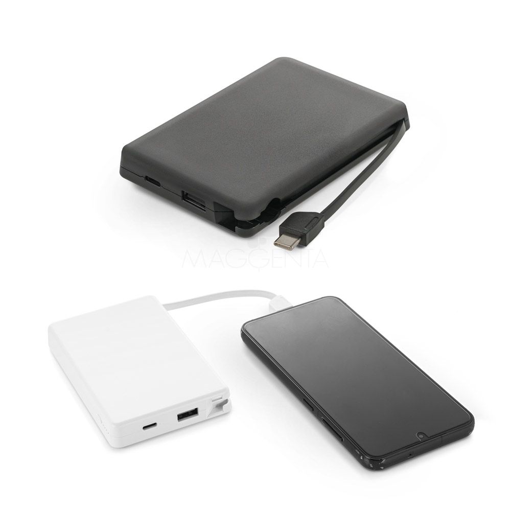 Tecnologia Bateria portátil em ABS 100% reciclado, com cabo integrado. Bateria portátil com capacidade de 10.000 mAh, indicador de nível de carga, uma porta de entrada e saída USB-C, uma porta de saída USB-A e um cabo USB-C integrado, de entrada e saída, para maior comodidade, permitindo carregar de forma prática quer a própria bateria portátil, quer os seus dispositivos móveis. A bateria permite carregar dois dispositivos em simultâneo. 7,3 cm x 11,3 cm x 1,6 cm 184 g