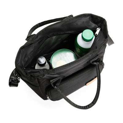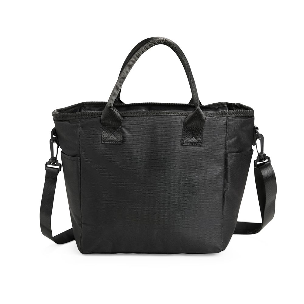 Bolsas Térmicas Bolsa térmica com capacidade de até 13 litros. Confeccionada em Oxford resistente à água, possui compartimento interno com revestimento térmico em PEVA e fechamento em zíper. Conta ainda com bolso frontal com plaquinha de couro sintético fixada com velcro, um par de bolsos laterais e duas alças fixas para transporte, além de uma alça transversal regulável com mosquetões para encaixe nas fivelas laterais da bolsa. 26,0 cm x 26,0 cm x 13,5 cm 365 g