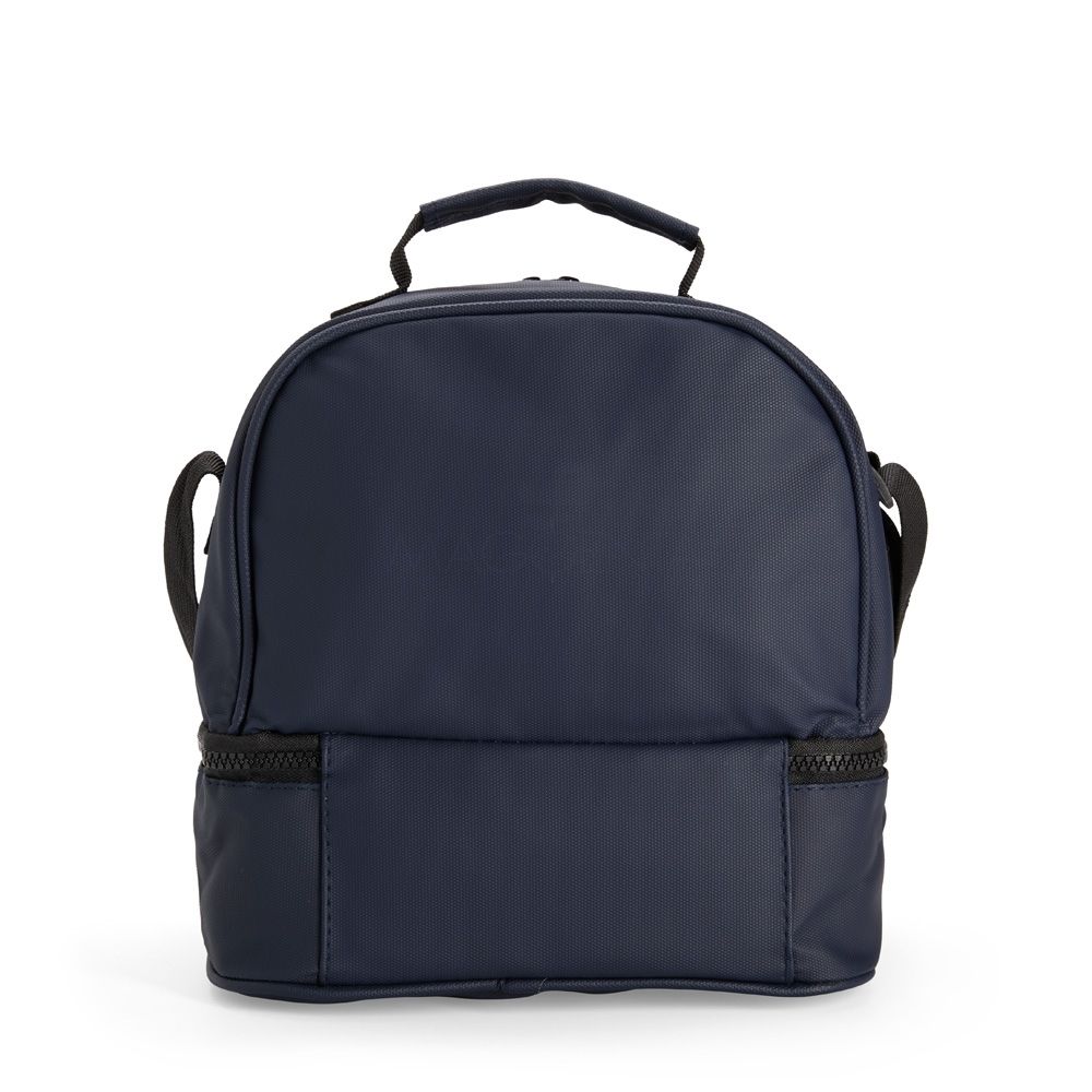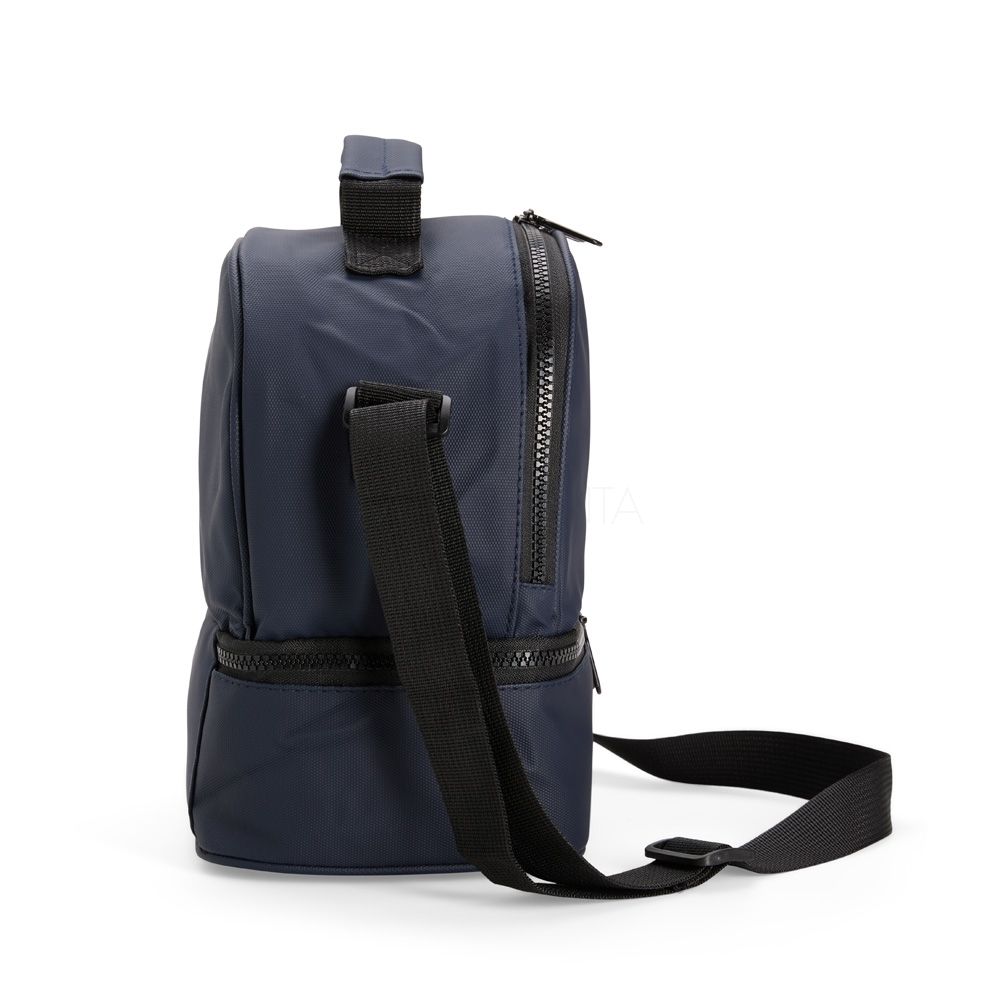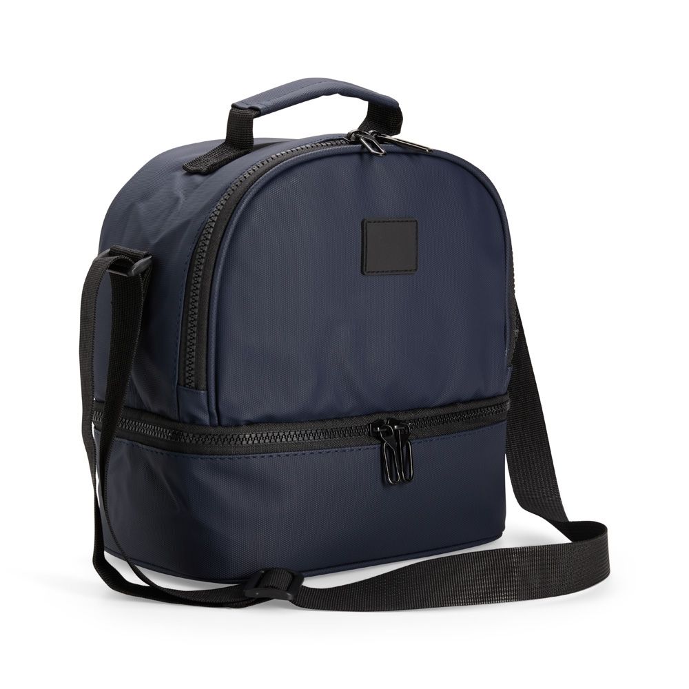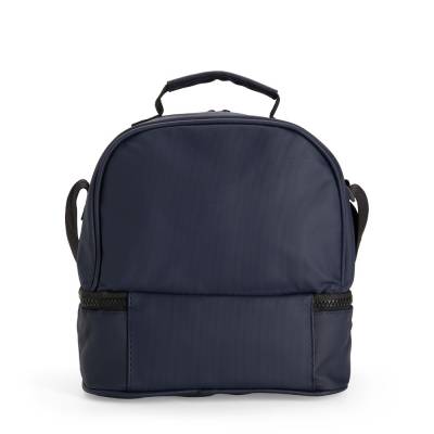Bolsas Térmicas Bolsa térmica confeccionada em poliéster mesclado com PVC impermeável, fechamento em zíper e capacidade de até 7 litros na soma de seus dois compartimentos térmicos individuais revestidos em PEVA atóxico. Conta com placa emborrachada para personalização, uma alça de mão e alça transversal. 22,5 cm x 23,5 cm x 14,5 cm 306 g
