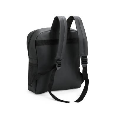 Mochilas Mochila feita em couro sintético impermeável, com fechamento em zíper e capacidade máxima de 20 litros. Apresenta divisória interna, ideal para notebooks de até 14 polegadas. Conta também com um bolso frontal com uma plaquinha costurada e dois bolsos laterais em tela feitos em nylon. 33,0 cm x 39,0 cm x 10,5 cm 320 g