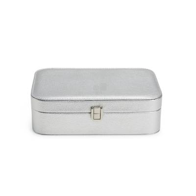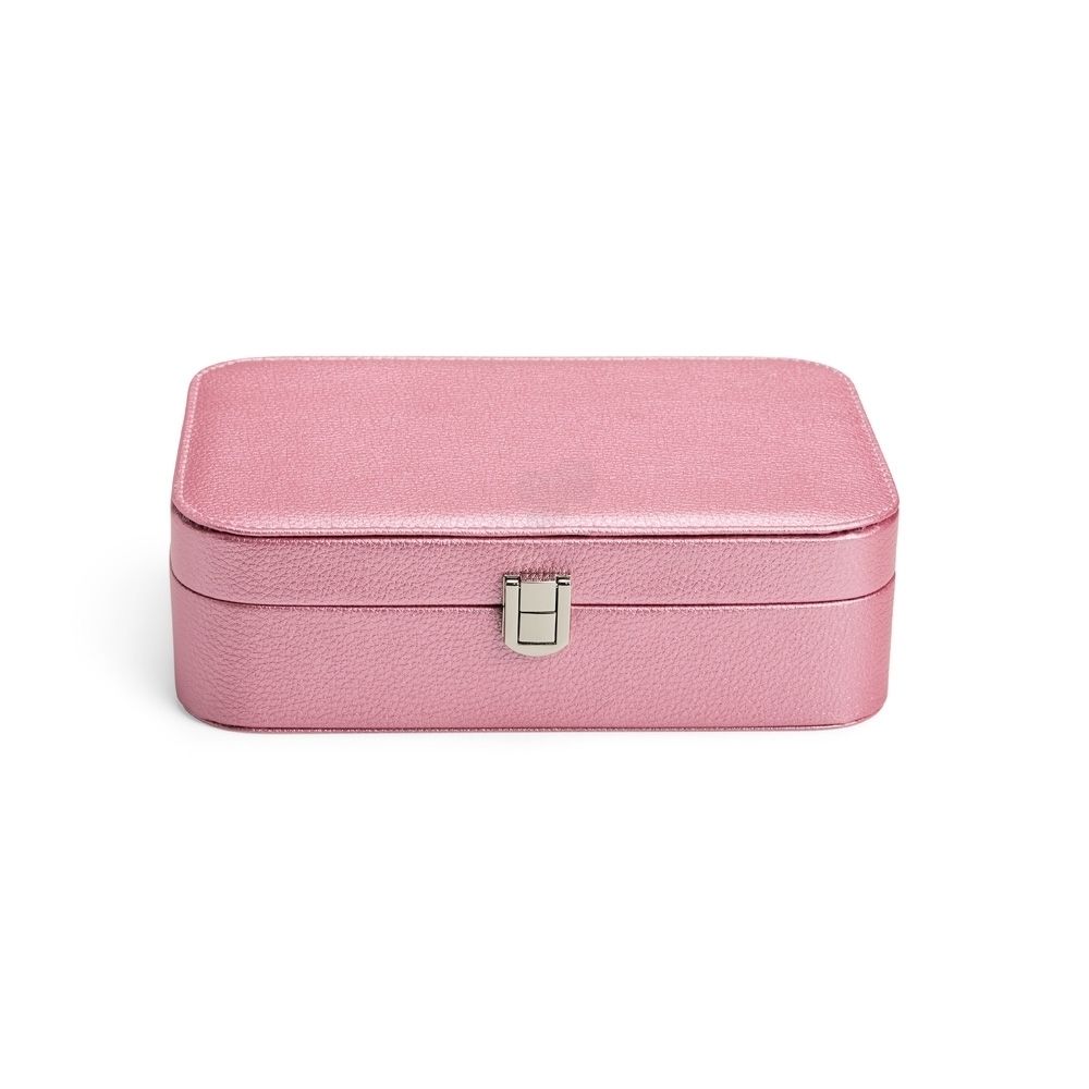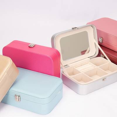 Brindes Femininos Porta-joias em poliuretano (PU) e revestimento interno aveludado. Apresenta, em seu interior, um espelho fixo e mais seis divisórias, incluindo uma repartição almofadada com ranhuras para guardar anéis. Além disso, o estojo possui trava de segurança para fechamento. 22,3 cm x 6,5 cm x 14,8 cm 478 g