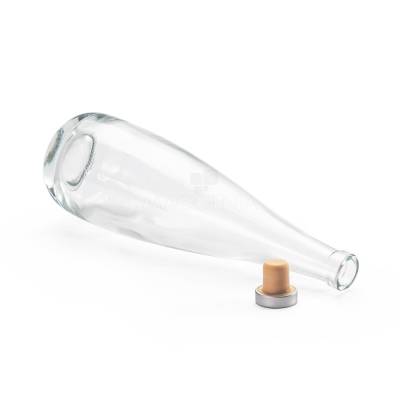 Garrafa de vidro com tampa rolha em material sintético e capacidade máxima de até 550ml.