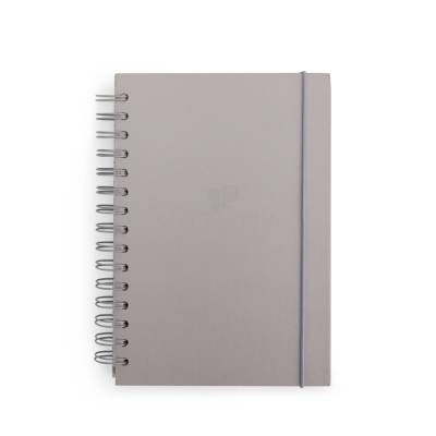 Caderno com capa dura em couchê, encadernação wire-o, marcador de páginas em fita de cetim e elástico para fechamento. Conta com aproximadamente 160 folhas brancas com pauta.