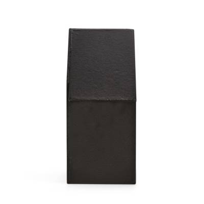 Calendário de mesa permanente em madeira com formato de uma casa. De uso intuitivo, conta com dois cubos para os dias do mês em formato numérico e três blocos com os nomes dos meses para atualização manual de data.