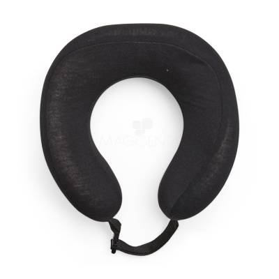 Almofada de pescoço com design anatômico, enchimento em espuma viscoelástica macia em poliuretano e capa em poliéster. Possui alças ajustáveis em nylon e fechamento com engate plástico.