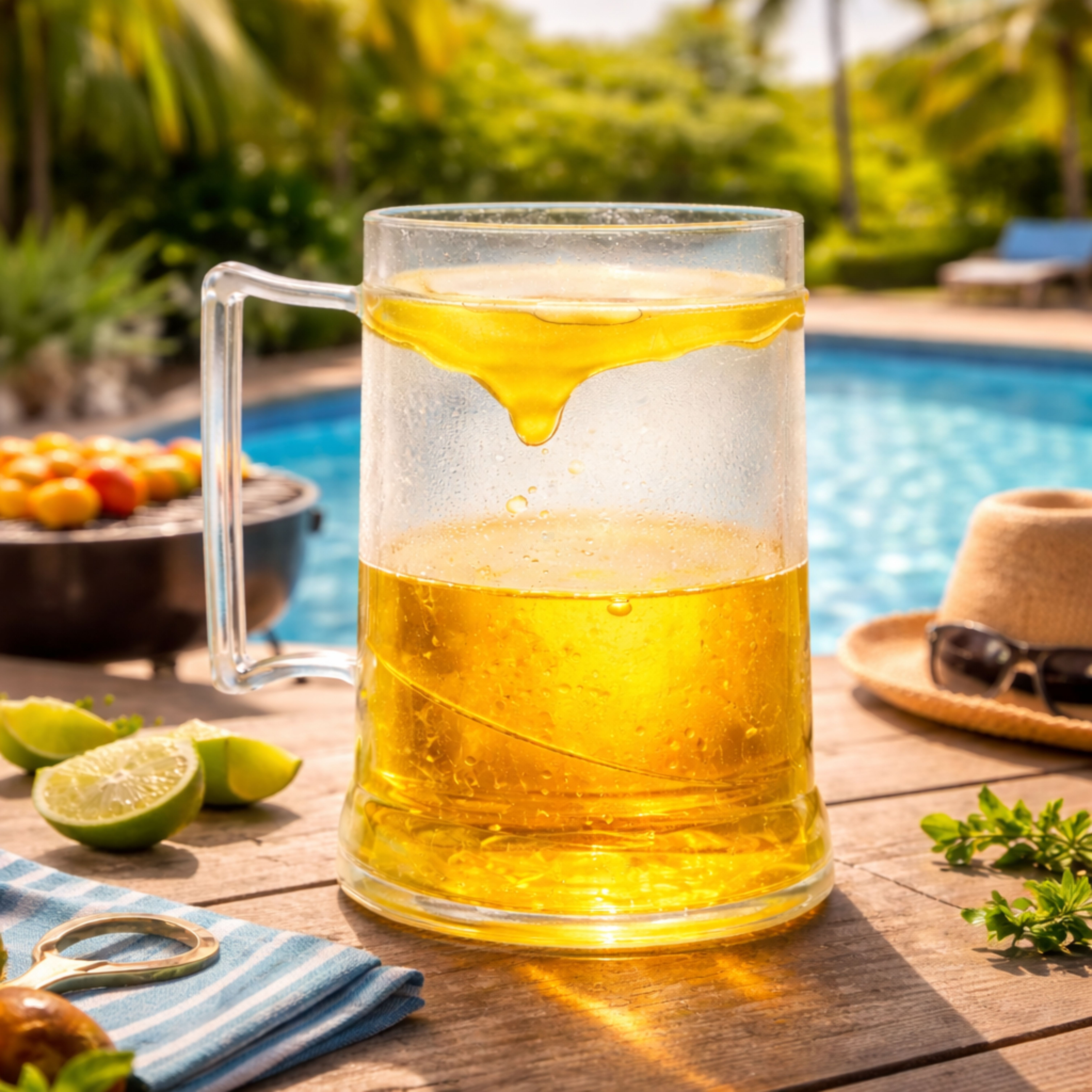 Caneca de chopp gel 300ml personalizada, desenvolvida em poliestireno com compartimento interno de gel, ideal para conservar bebidas frias por mais tempo. Leve, resistente e funcional, conta com alça confortável e formato atrativo. Excelente opção para brindes corporativos em eventos, campanhas promocionais e ações sazonais. Com personalização em silk screen, garante visibilidade para sua marca em momentos de lazer e descontração.