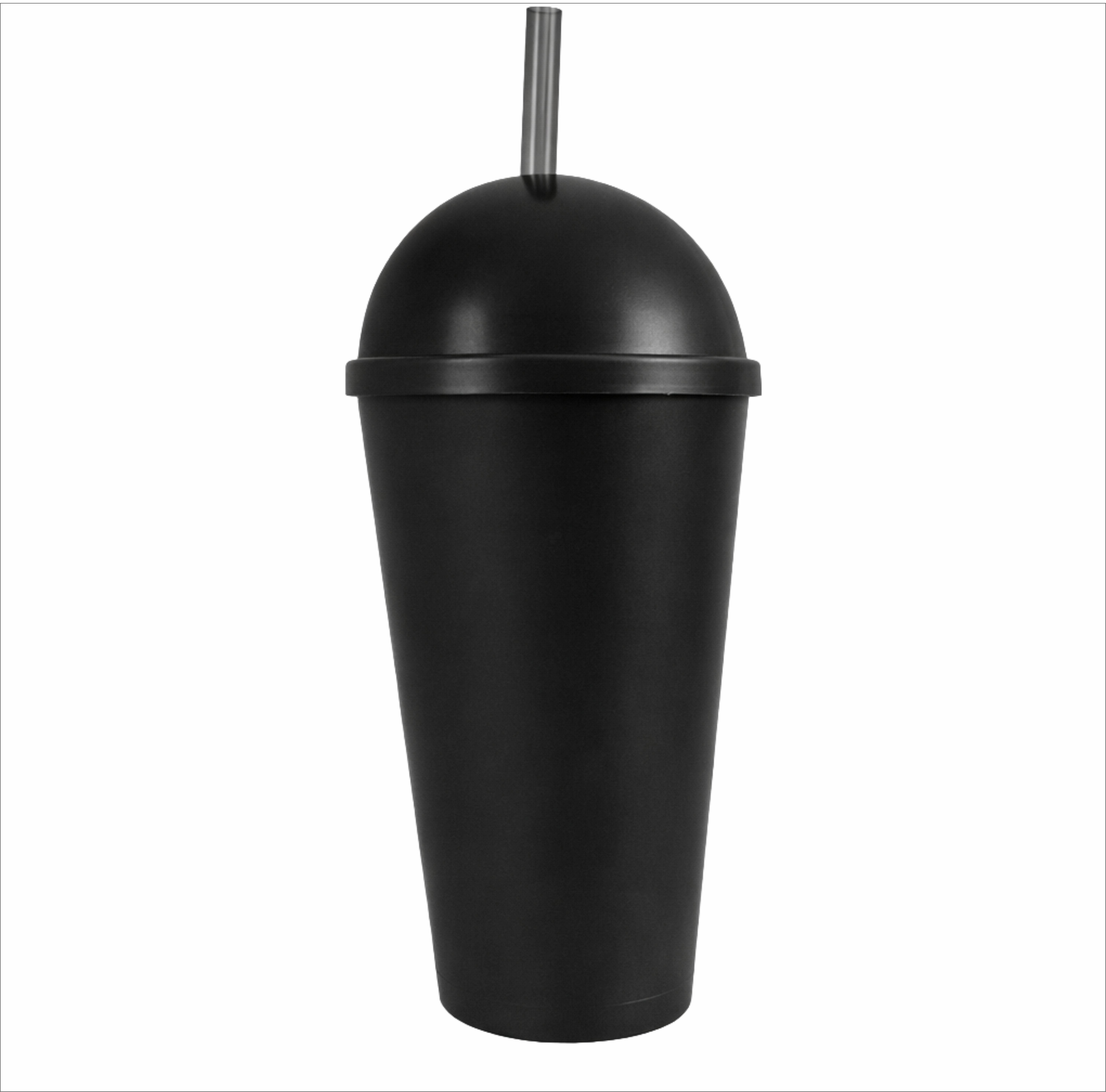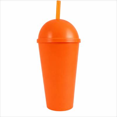 Copo Plástico com Tampa Bola e Canudo 450ml